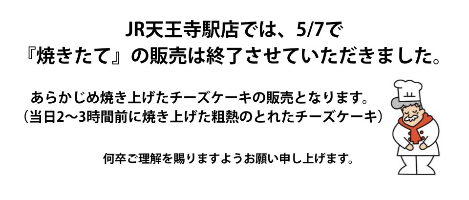 【JR天王寺駅店】「焼きたて」をお休みさせていただきます(5/7~期間限定)