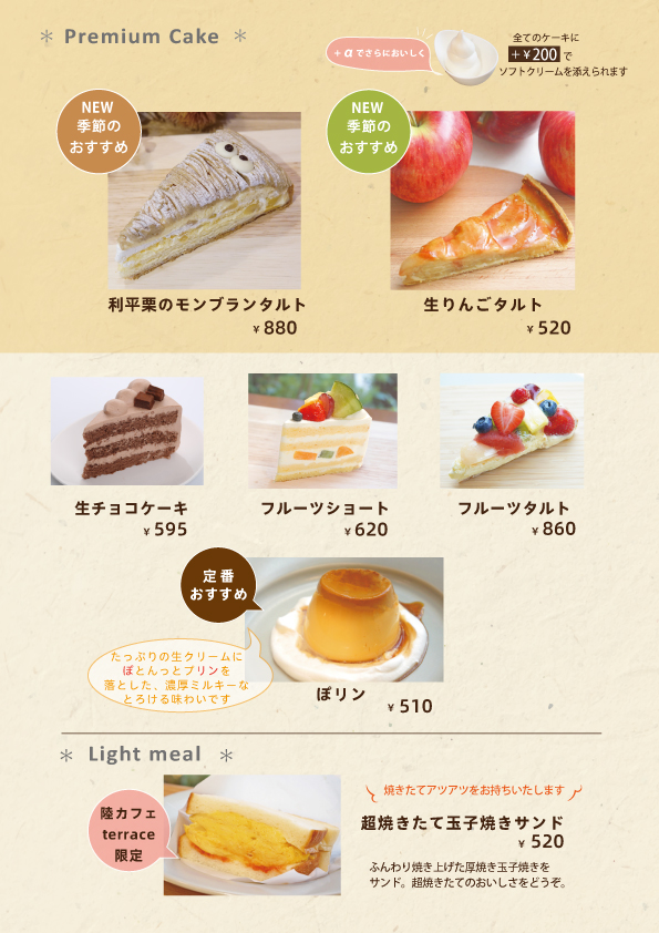 ↓※チーズケーキ・ドリンクメニューはこちら↓