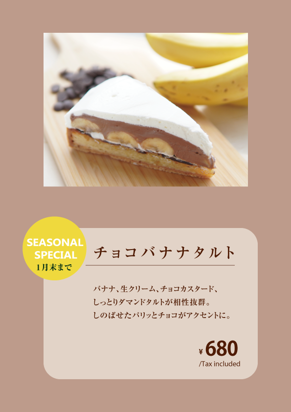 ↓季節のケーキ(1/16~のメニューです。)(※状況により変更になる可能性がございます)↓※チーズケーキ・ドリンクメニューはこちら↓